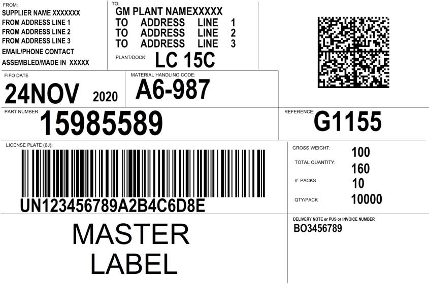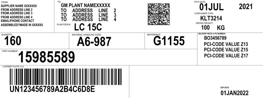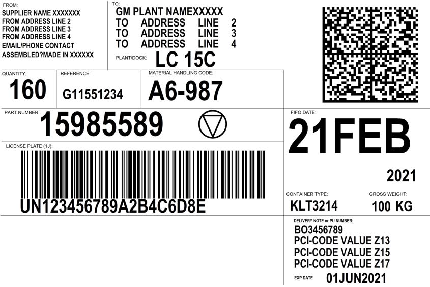 of GM 1724A, GM 1724B and GM 1724C. These templates are the latest versions as required by General Motors for all shipments starting 11/2020 with new FIFO requirements, and the 2018 switch to Data Matrix 2D bar codes which replaced the older PDF-417 bar codes.